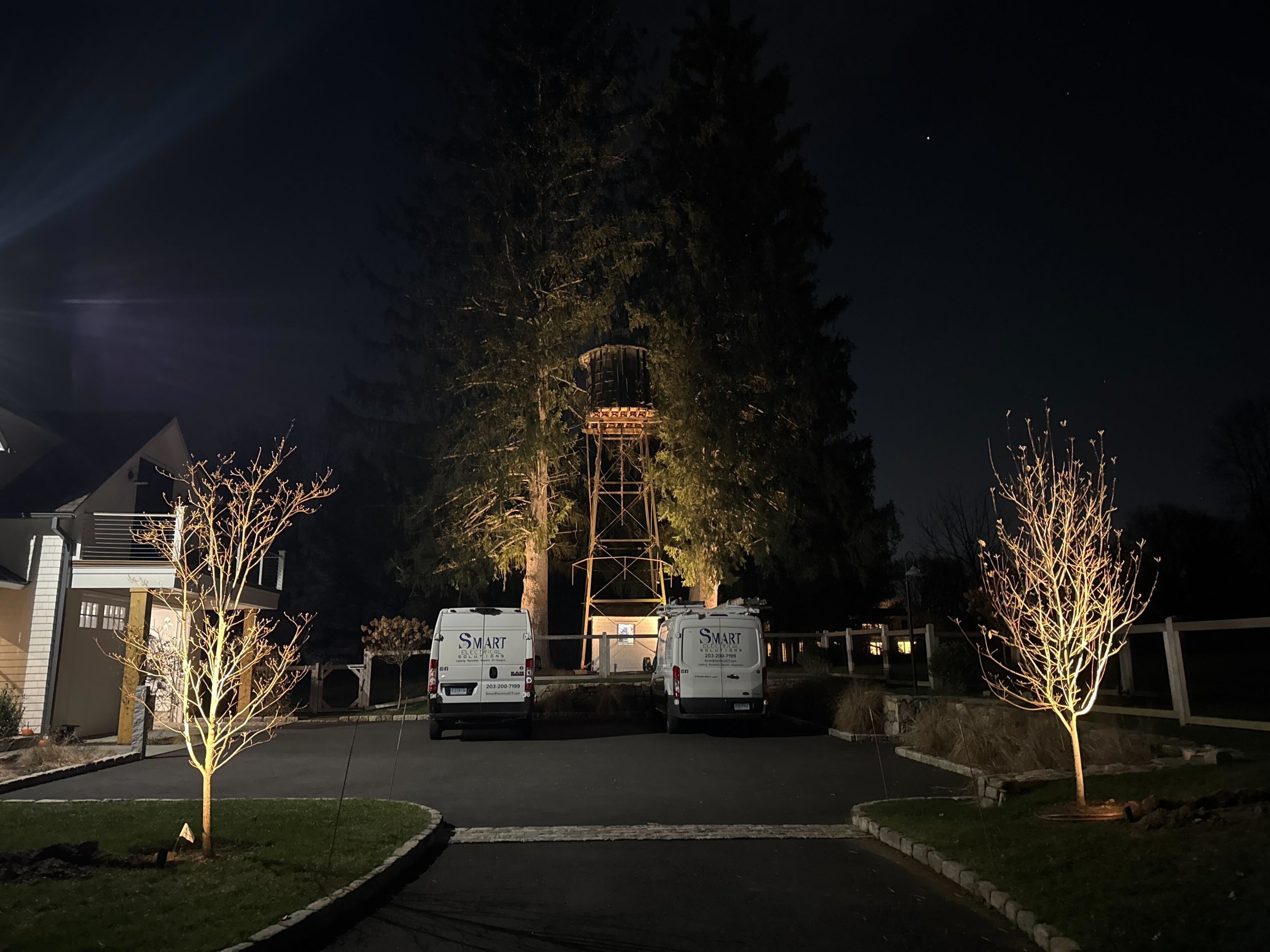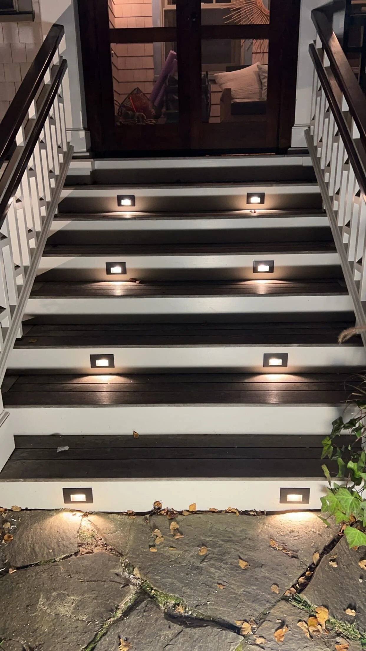 Customer in Norwalk, CT had a very dark front yard and he wanted to avoid spot lights so we came up with this solution to add step lights plus landscape lighting highlighting some beautiful areas around his yard/driveway.